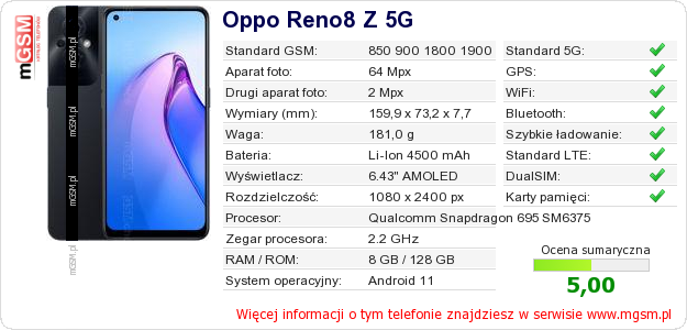 Dane telefonu Oppo Reno8 Z 5G na Twojej stronie