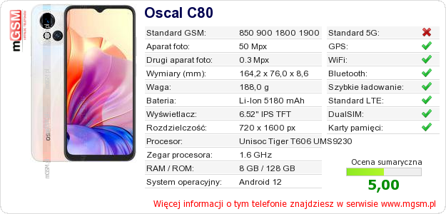 Dane telefonu Oscal C80 na Twojej stronie
