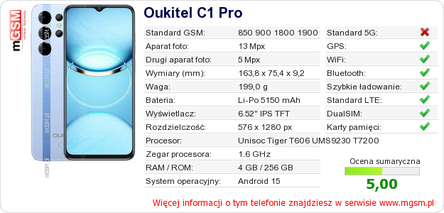 Dane telefonu Oukitel C1 Pro na Twojej stronie