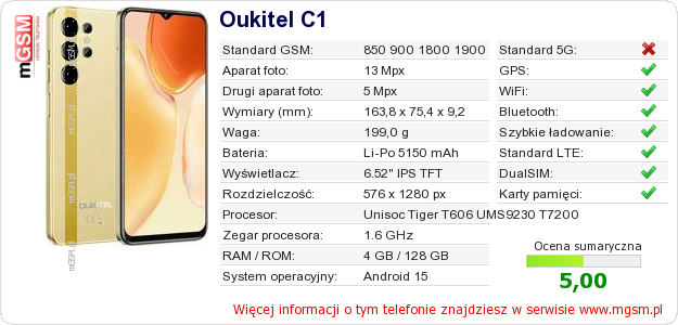 Dane telefonu Oukitel C1 na Twojej stronie