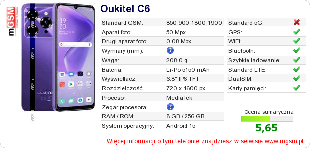 Dane telefonu Oukitel C6 na Twojej stronie