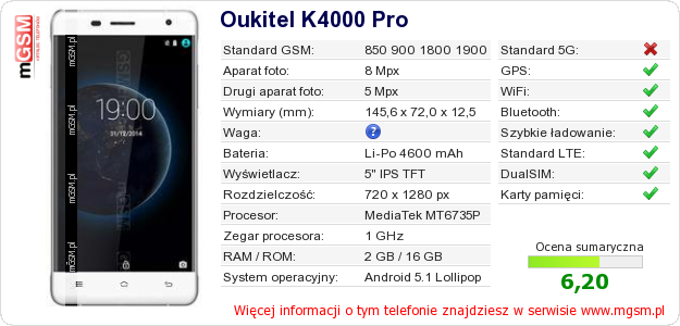 Dane telefonu Oukitel K4000 Pro na Twojej stronie