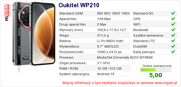 Dane telefonu Oukitel WP210 na Twojej stronie