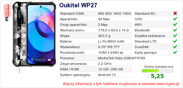 Dane telefonu Oukitel WP27 na Twojej stronie
