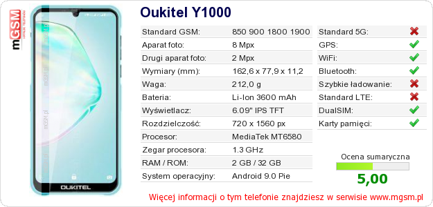 Dane telefonu Oukitel Y1000 na Twojej stronie