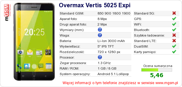 Dane telefonu Overmax Vertis 5025 Expi na Twojej stronie