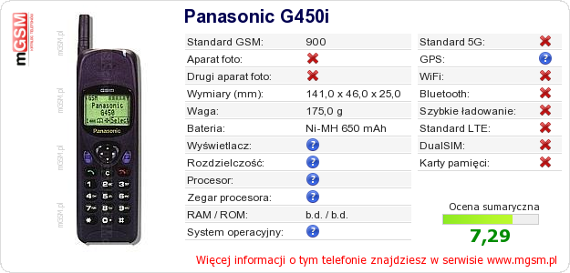 Dane telefonu Panasonic G450i na Twojej stronie