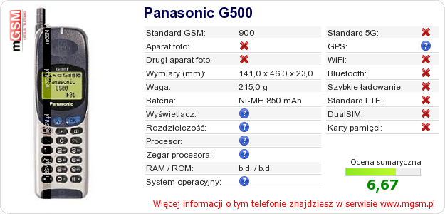 Dane telefonu Panasonic G500 na Twojej stronie