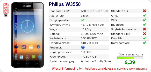 Dane telefonu Philips W3550 na Twojej stronie