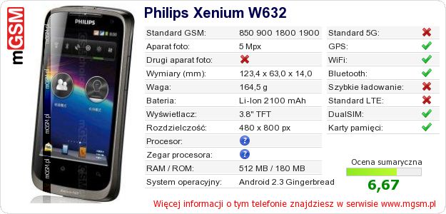 Dane telefonu Philips Xenium W632 na Twojej stronie