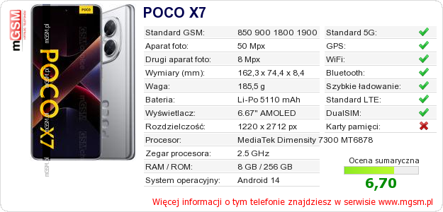 Dane telefonu POCO X7 na Twojej stronie