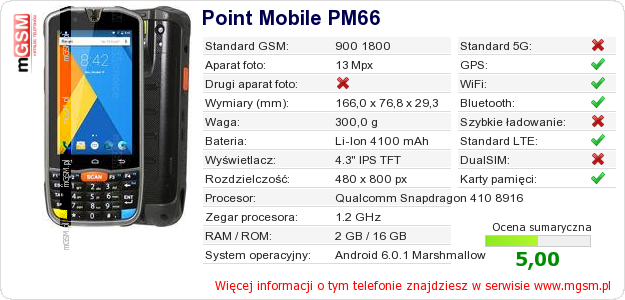 Dane telefonu Point Mobile PM66 na Twojej stronie