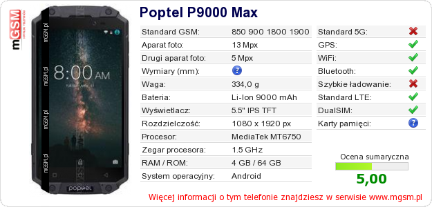 Dane telefonu Poptel P9000 Max na Twojej stronie