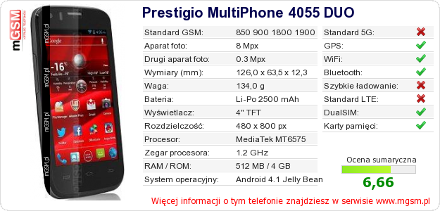 Dane telefonu Prestigio MultiPhone 4055 DUO na Twojej stronie