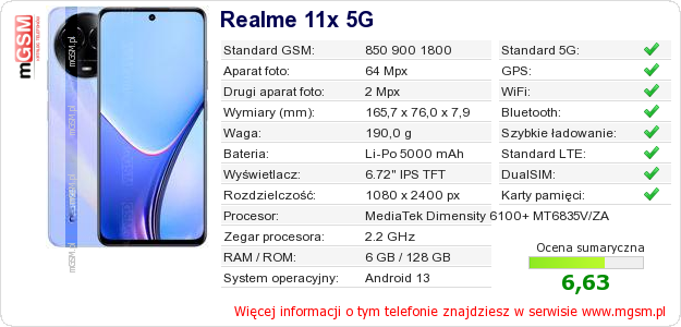 Dane telefonu Realme 11x 5G na Twojej stronie