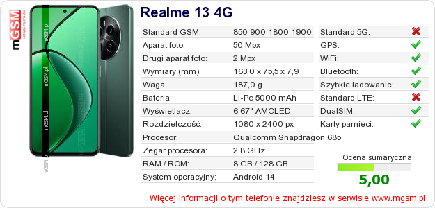Dane telefonu Realme 13 4G na Twojej stronie