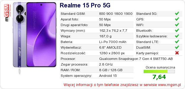 Dane telefonu Realme 15 Pro 5G na Twojej stronie