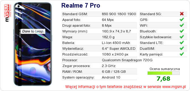 Dane telefonu Realme 7 Pro na Twojej stronie