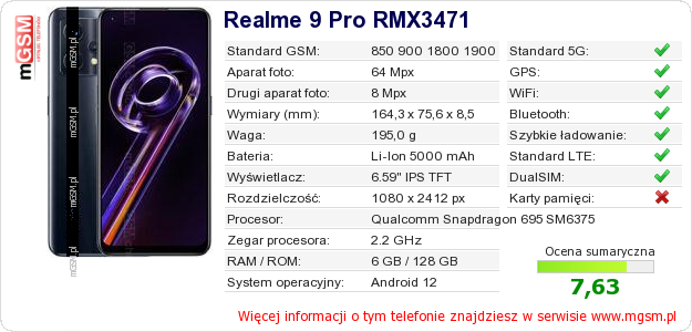 Dane telefonu Realme 9 Pro RMX3471 na Twojej stronie