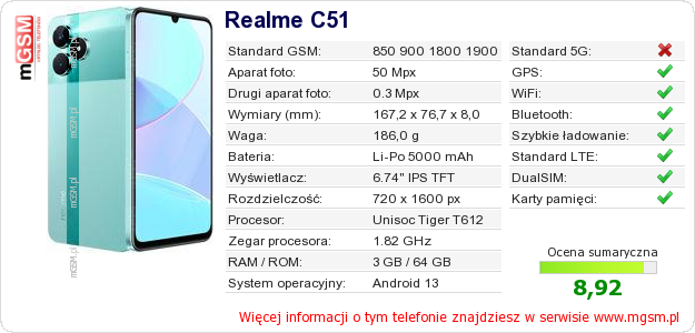 Dane telefonu Realme C51 na Twojej stronie