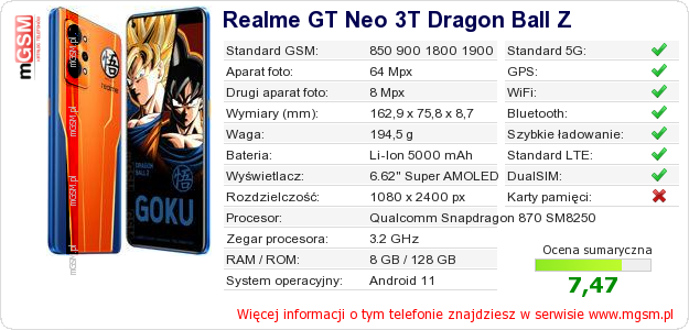 Dane telefonu Realme GT Neo 3T Dragon Ball Z na Twojej stronie