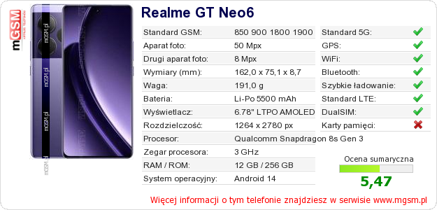 Dane telefonu Realme GT Neo6 na Twojej stronie