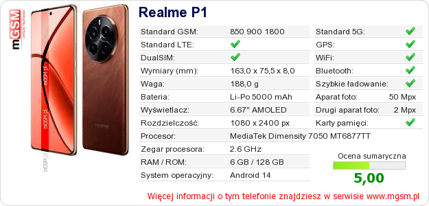 Dane telefonu Realme P1 na Twojej stronie