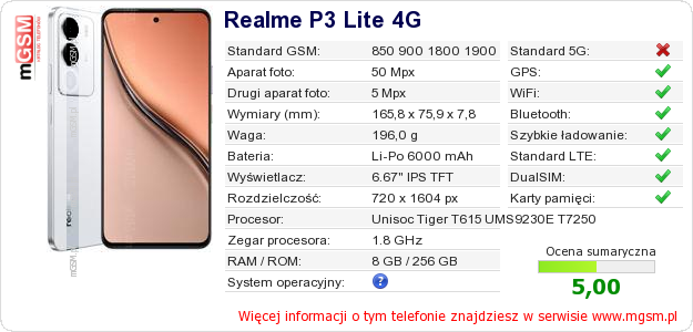 Dane telefonu Realme P3 Lite 4G na Twojej stronie