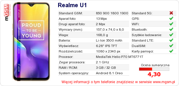 Dane telefonu Realme U1 na Twojej stronie