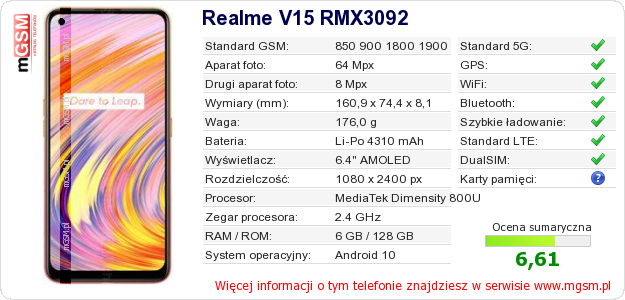Dane telefonu Realme V15 RMX3092 na Twojej stronie