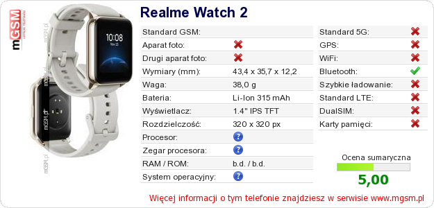 Dane telefonu Realme Watch 2 na Twojej stronie