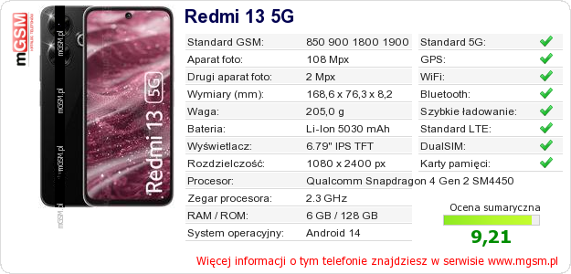 Dane telefonu Redmi 13 5G na Twojej stronie