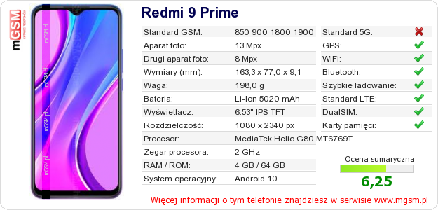 Dane telefonu Redmi 9 Prime na Twojej stronie