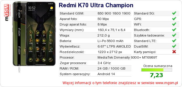 Dane telefonu Redmi K70 Ultra Champion na Twojej stronie