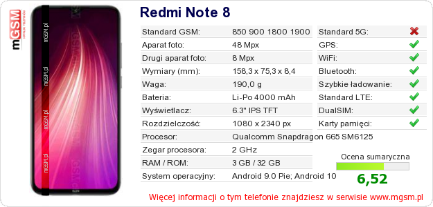 Dane telefonu Redmi Note 8 na Twojej stronie