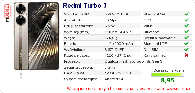 Dane telefonu Redmi Turbo 3 na Twojej stronie