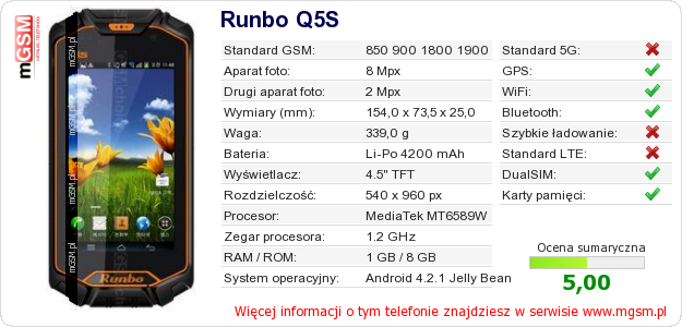 Dane telefonu Runbo Q5S na Twojej stronie
