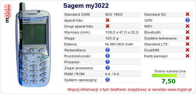 Dane telefonu Sagem my3022 na Twojej stronie