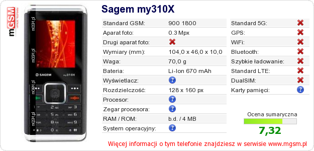 Dane telefonu Sagem my310X na Twojej stronie