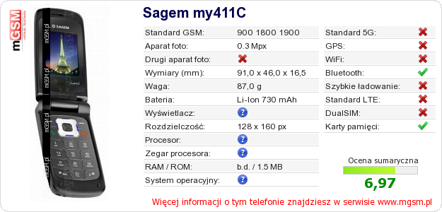 Dane telefonu Sagem my411C na Twojej stronie