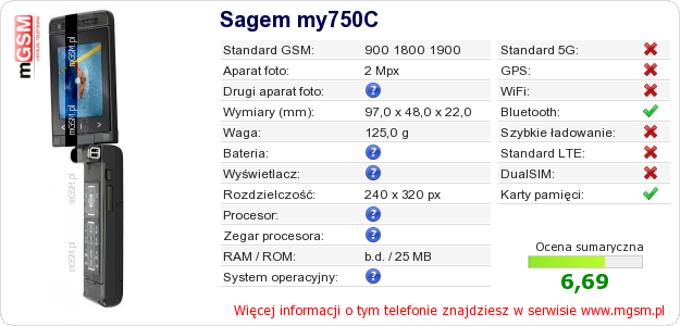 Dane telefonu Sagem my750C na Twojej stronie