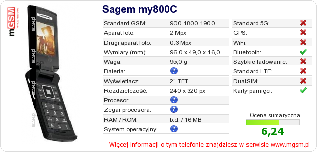 Dane telefonu Sagem my800C na Twojej stronie