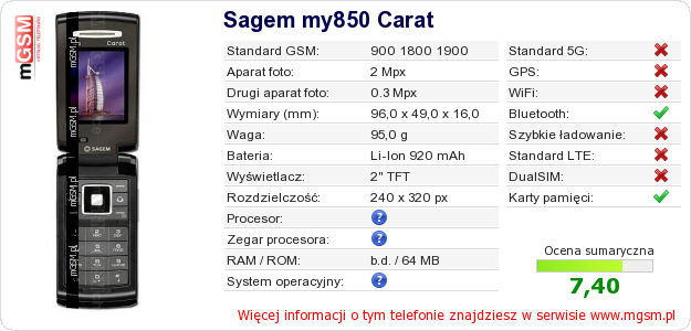 Dane telefonu Sagem my850 Carat na Twojej stronie