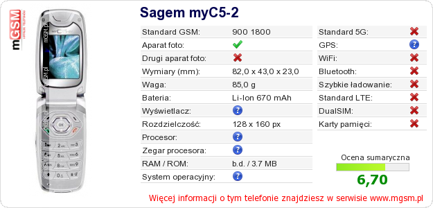 Dane telefonu Sagem myC5-2 na Twojej stronie