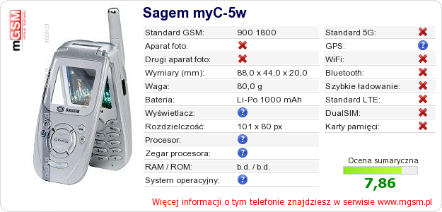 Dane telefonu Sagem myC-5w na Twojej stronie