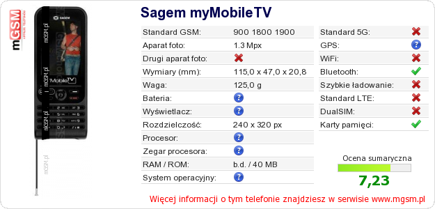 Dane telefonu Sagem myMobileTV na Twojej stronie