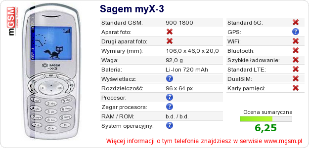 Dane telefonu Sagem myX-3 na Twojej stronie