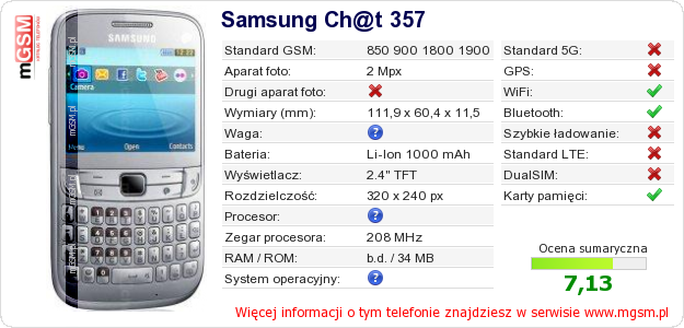 Dane telefonu Samsung Ch@t 357 na Twojej stronie