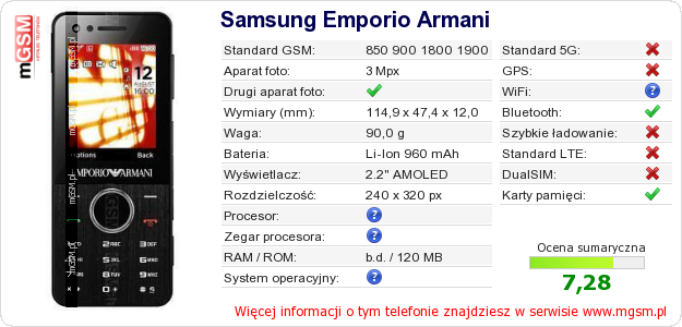 Dane telefonu Samsung Emporio Armani na Twojej stronie