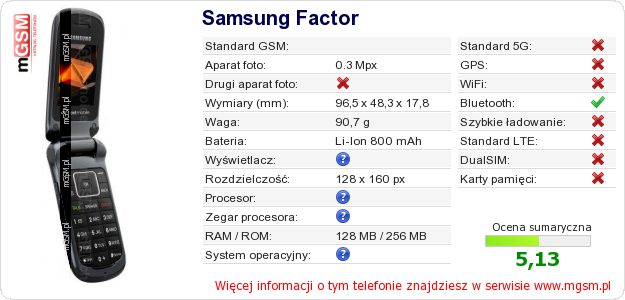 Dane telefonu Samsung Factor na Twojej stronie